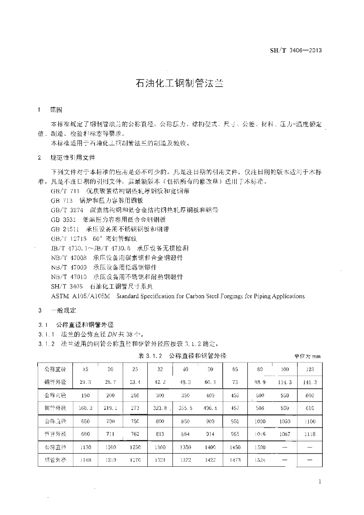 SH/T 3406-2013 石油化工钢制管法兰
