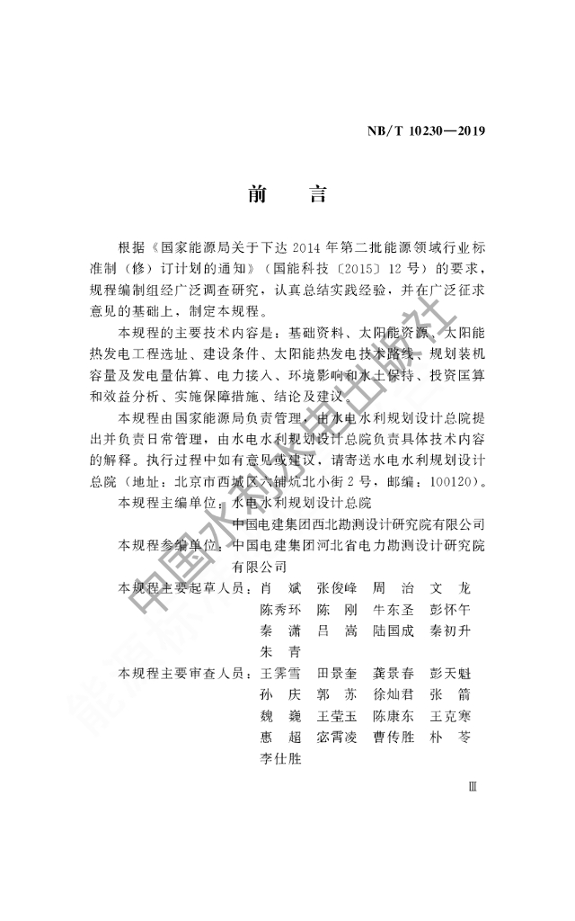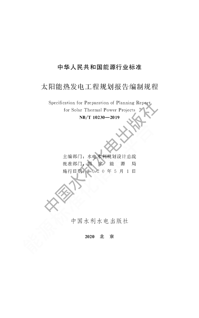 NB/T 10230-2019 太阳能热发电工程规划报告编制规程
