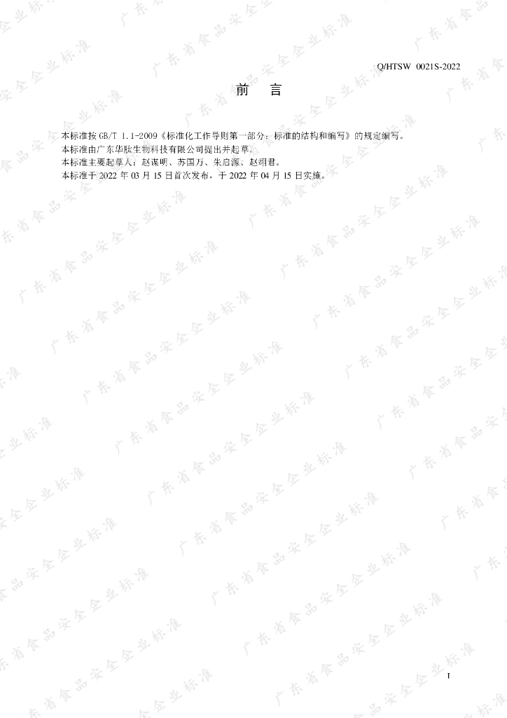 Q/HTSW 0021S-2022 鸡软骨提取物