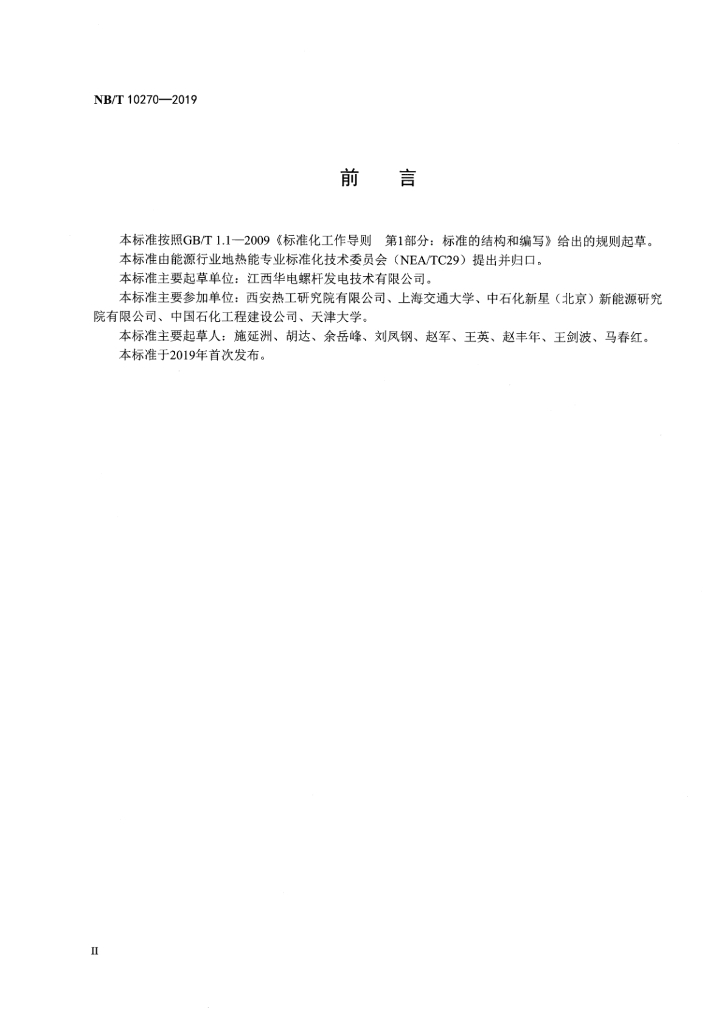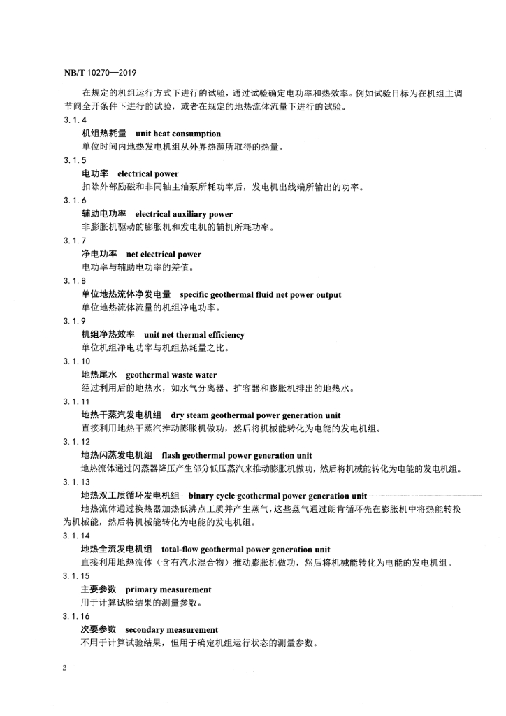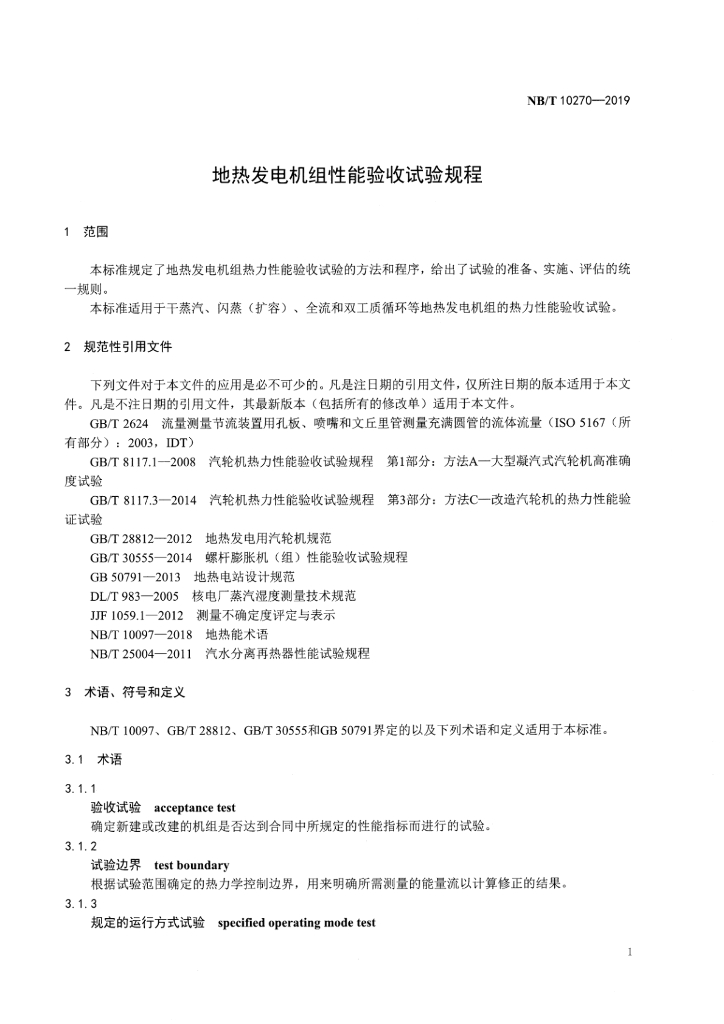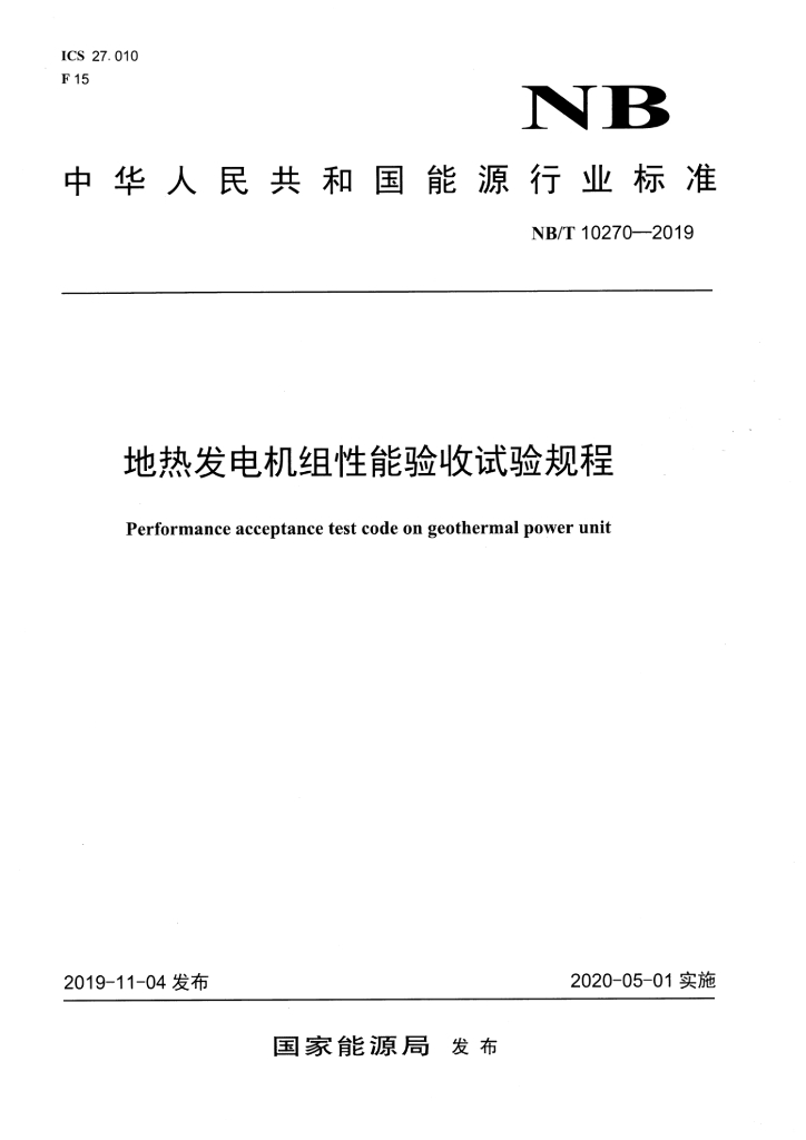 NB/T 10270-2019 地热发电机组性能验收试验规程