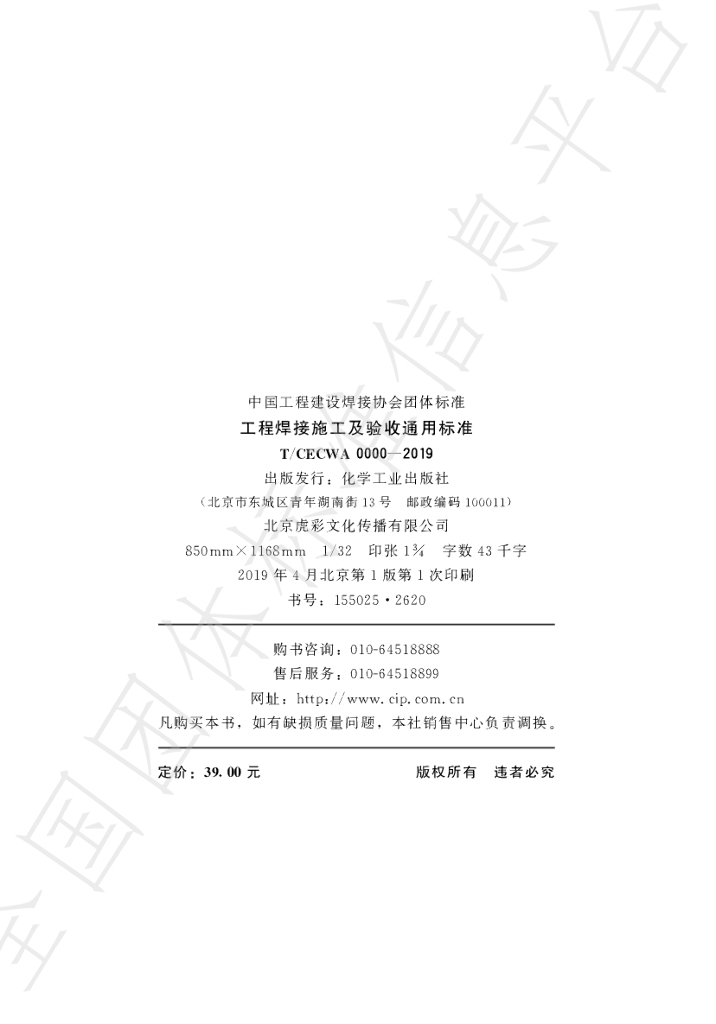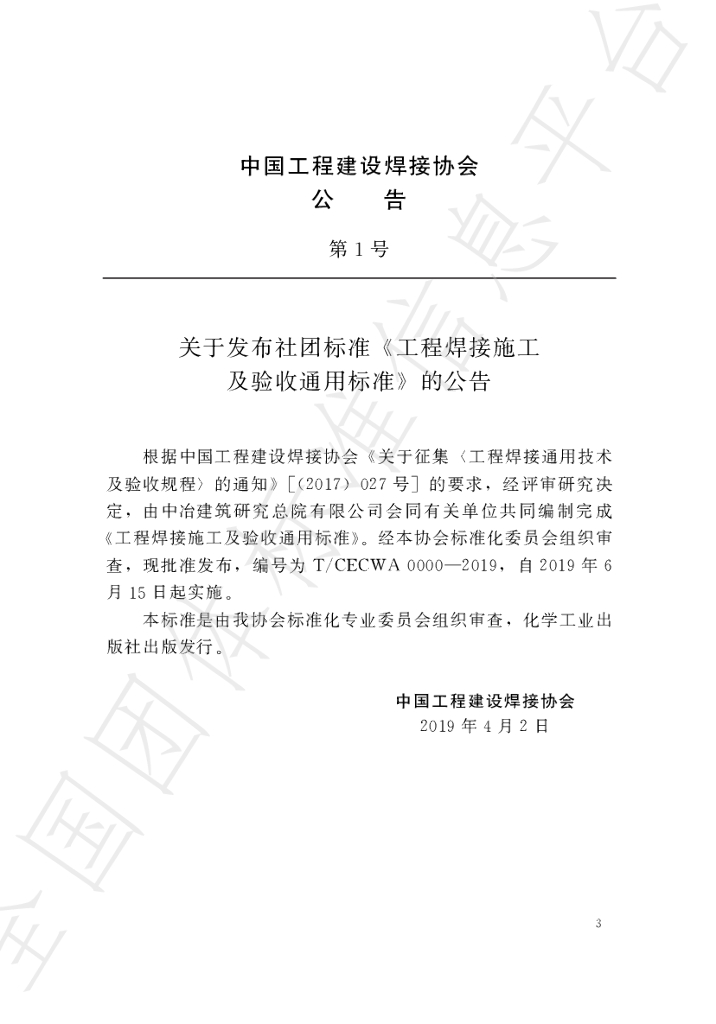 T/CECWA 0000-2019 工程焊接施工及验收通用标准