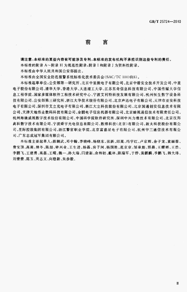 公安部第一研究所、北京中星微电子有限公司、北京中盾安全技术开发公司、中星电子股份有限公司、清华大学、香港大学、大连理工大学、江苏东奇信息科技有限公司、中国传媒大学信息工程学院、国家多媒体软件工程技术研究中心、宁波艾利特科技发展有限公司、杭州恒生数字设备科技有限公司、公安部第三研究所、浙江大华技术股份有限公司、北京声迅电子有限公司、天津市亚安科技电子有限公司、深圳市艾立克电子有限公司、浙江大立科技股份有限公司、北京国通创安信息技术有限公司、天津天地伟业数码科技有限公司、金鹏电子信息机器有限公司、北京蛙视通信