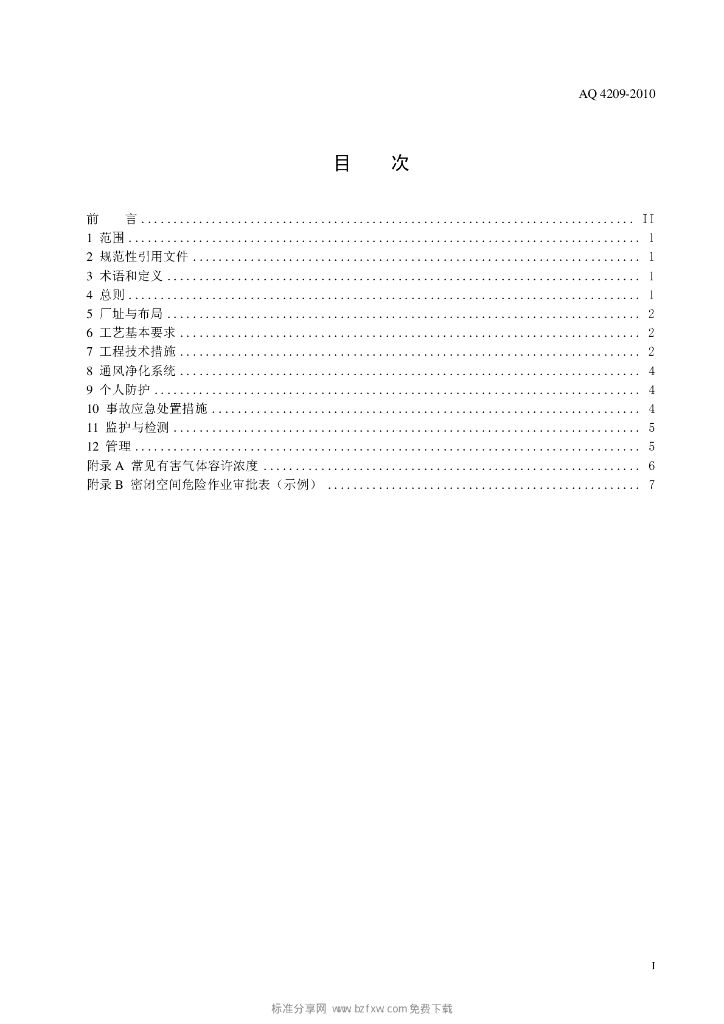 AQ 4209-2010 城镇污水处理厂防毒技术规范