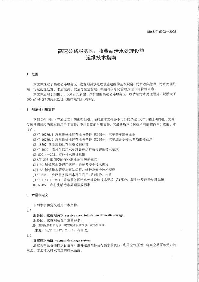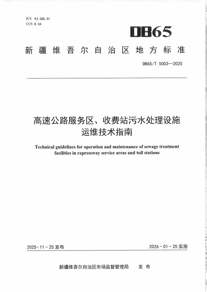 DB65/T 5003-2025 高速公路服务区、收费站污水处理设施运维技术指南