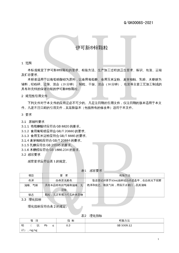Q/GK 0006S-2021 伊可新®锌颗粒