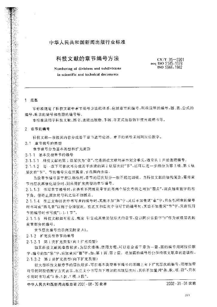 CY/T 35-2001 科技文献的章节编号方法
