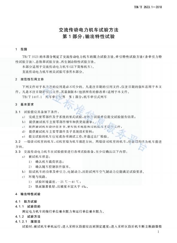 TB/T 3523.1-2018 交流传动电力机车试验方法 第1部分:输出特性试验