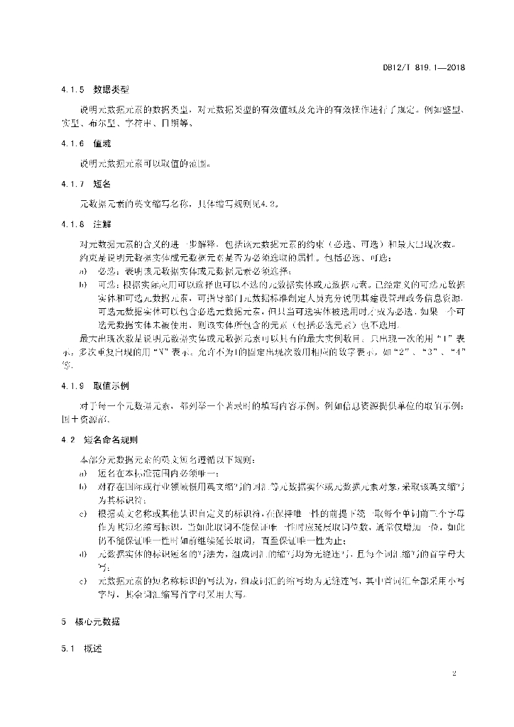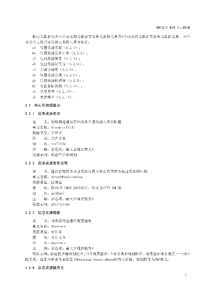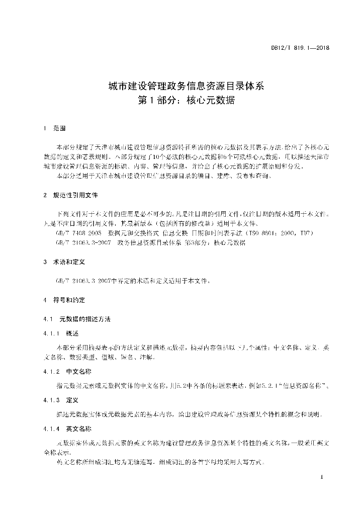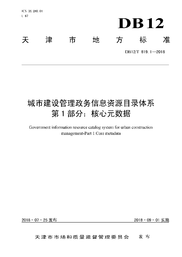 DB12/T 819.1-2018 城市建设管理政务信息资源目录体系 第1部分:核心元数据