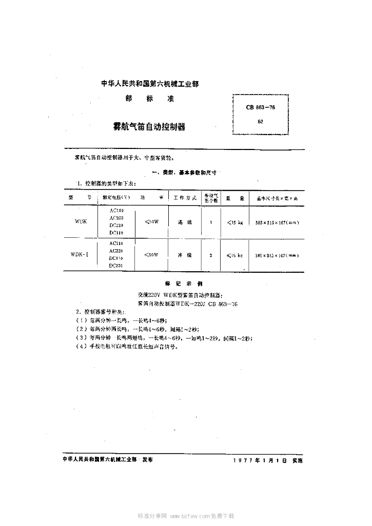 CB 863-1976 雾航气笛自动控制器