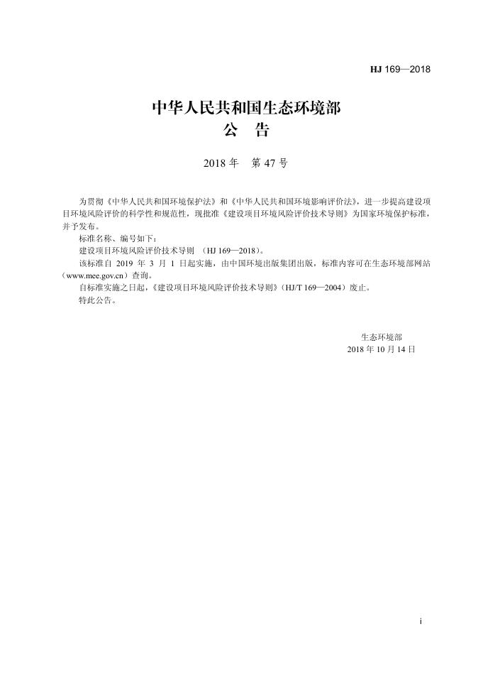 HJ 169-2018 建设项目环境风险评价技术导则