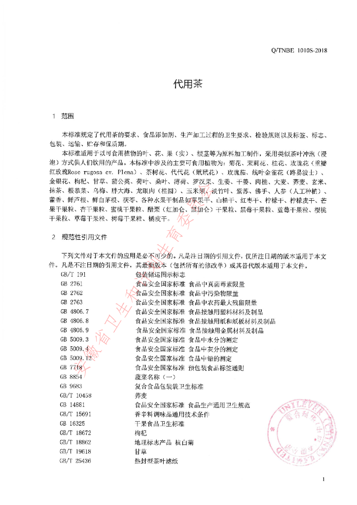 Q/TNBE 1010S-2018 代用茶