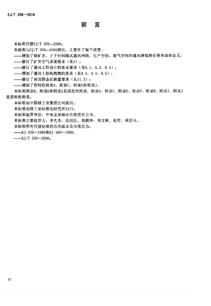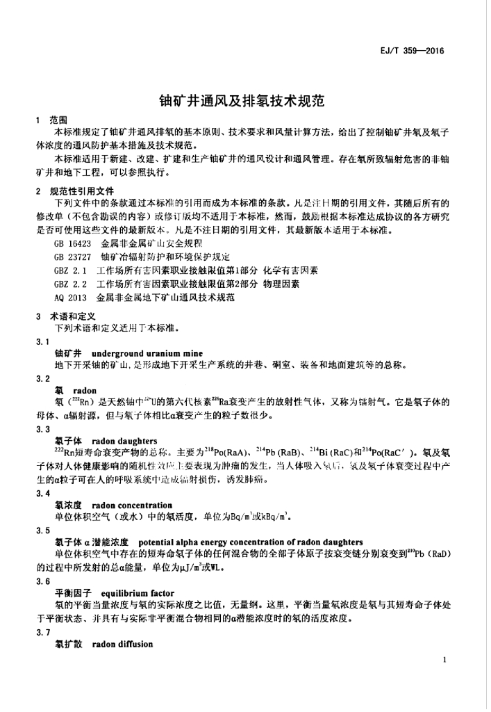 EJ/T 359-2016 铀矿井通风及排氡技术规范