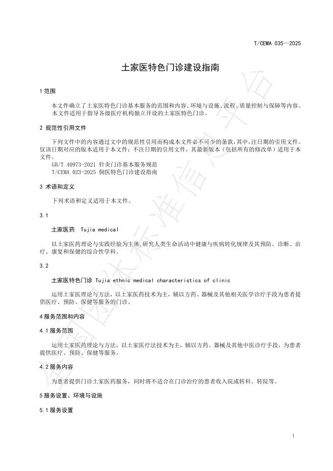 T/CEMA 035-2025 土家医特色门诊建设指南