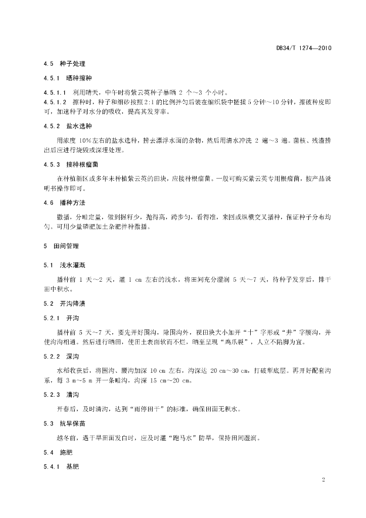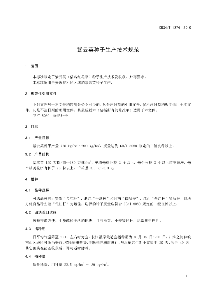 DB34/T 1274-2010 紫云英种子生产技术规范