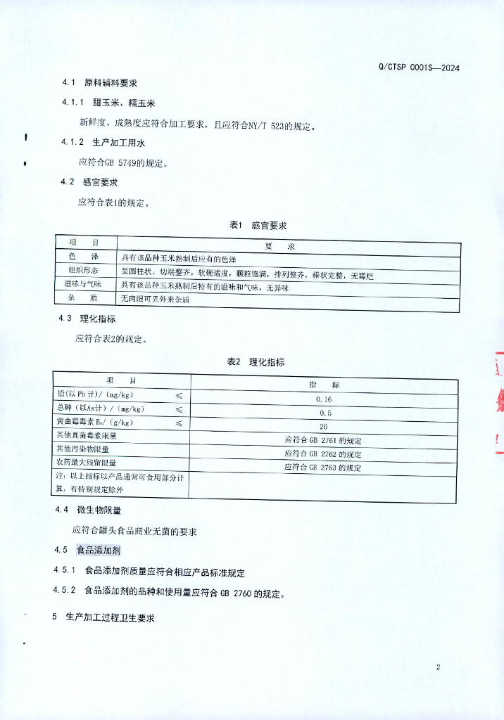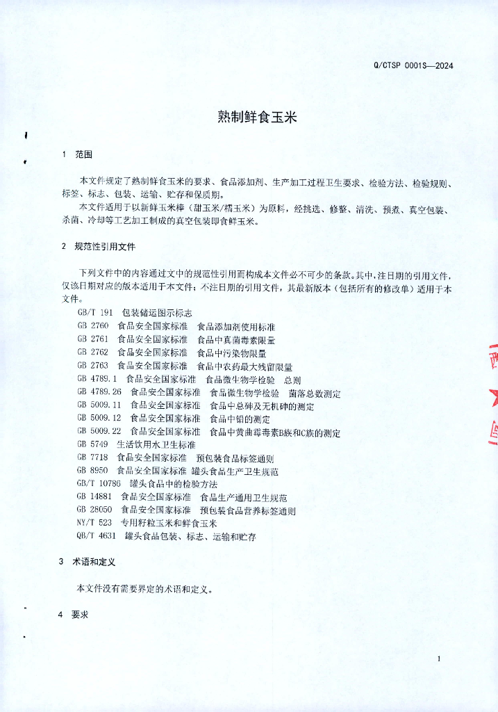 Q/CTSP 0001S-2024 熟制鲜食玉米