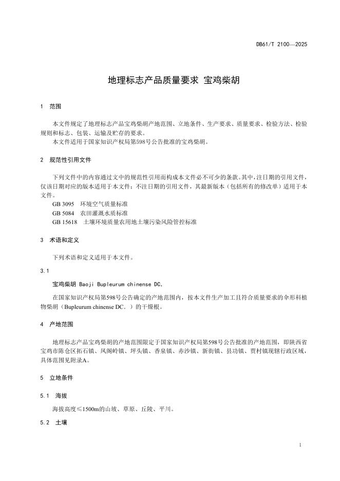 DB61/T 2100-2025 地理标志产品质量要求 宝鸡柴胡