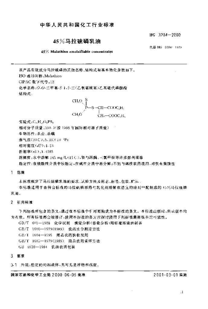 HG/T 3284-2000 45% 马拉硫磷乳油