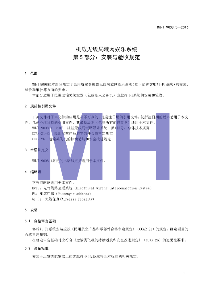 MH/T 9008.5-2016 机载无线局域网娱乐系统 第5部分:安装与验收规范
