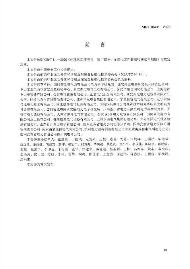 国网安徽省电力有限公司电力科学研究院、西安高压电器研究院有限责任公司、电力工业电力电容器质量检验中心、西安森宝电气工程有限公司、合肥华威自动化有限公司、上海思源电力电容器有限公司、合容电气股份有限公司、正泰电气股份有限公司、西安西电电力电容器有限责任公司、桂林电力电容器有限责任公司、江苏华冠电器集团有限公司、宁波新容电气有限公司、辽宁荣信兴业电力技术有限公司、河北旭辉电气股份有限公司、国网绍兴供电公司经济技术研究所绍兴大明电力设计院有限公司、国网智能电网研究院电力电子研究所、国网浙江省电力有限公司电力科学