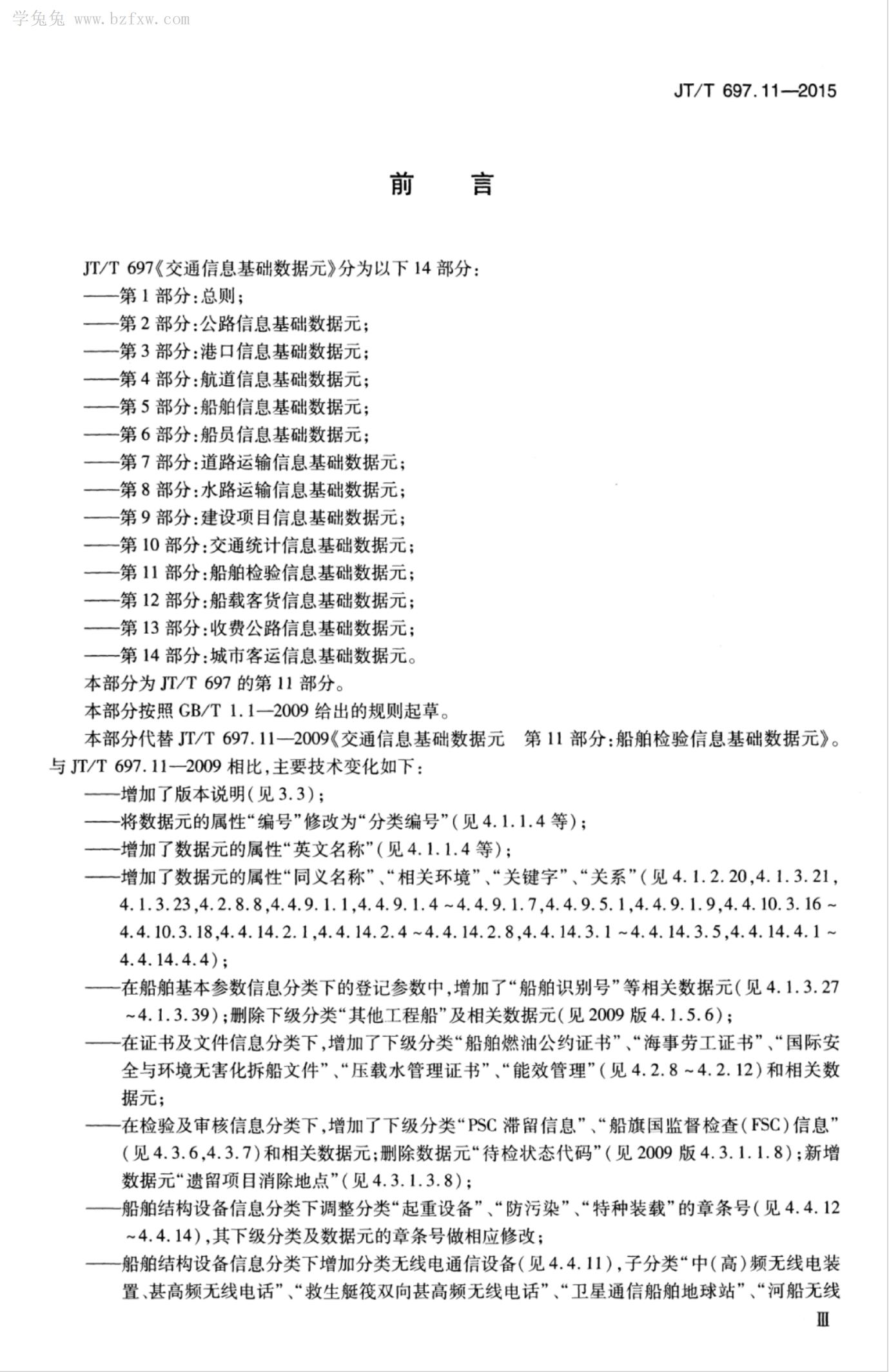 JT/T 697.11-2015 交通信息基础数据元 第11部分:船舶检验信息基础数据元-2015 交通信息基础数据元 第11部分:船舶检验信息基础数据元