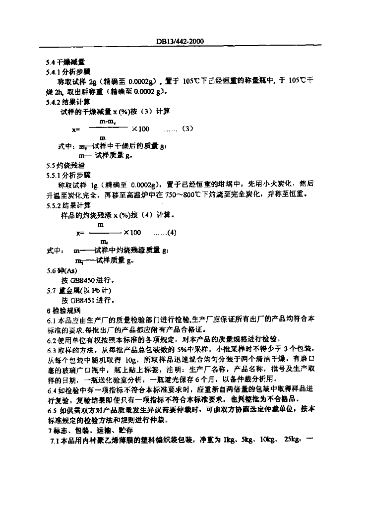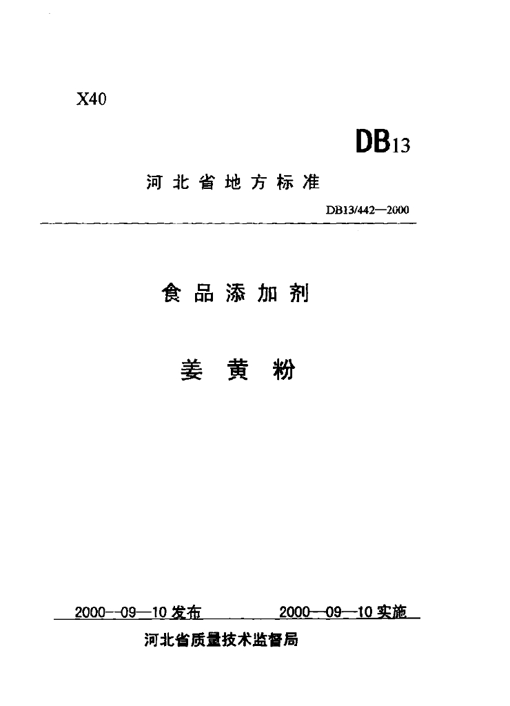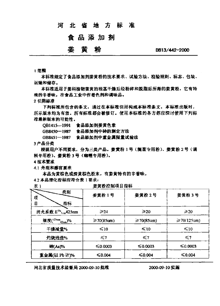DB13/ 442-2000 食品添加剂 姜黄粉