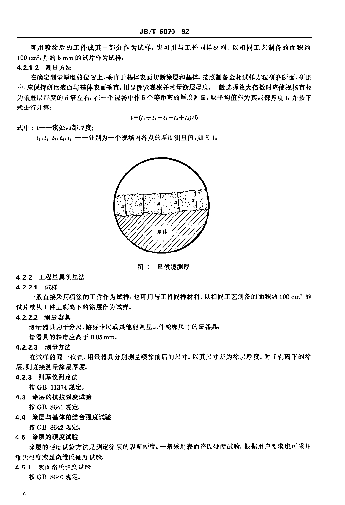 JB/T 6070-1992 热喷涂自熔合金涂层 试验方法
