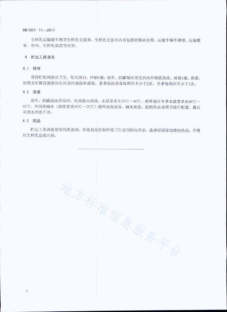DB1507/T 1-2017 生鲜乳贮运技术规程