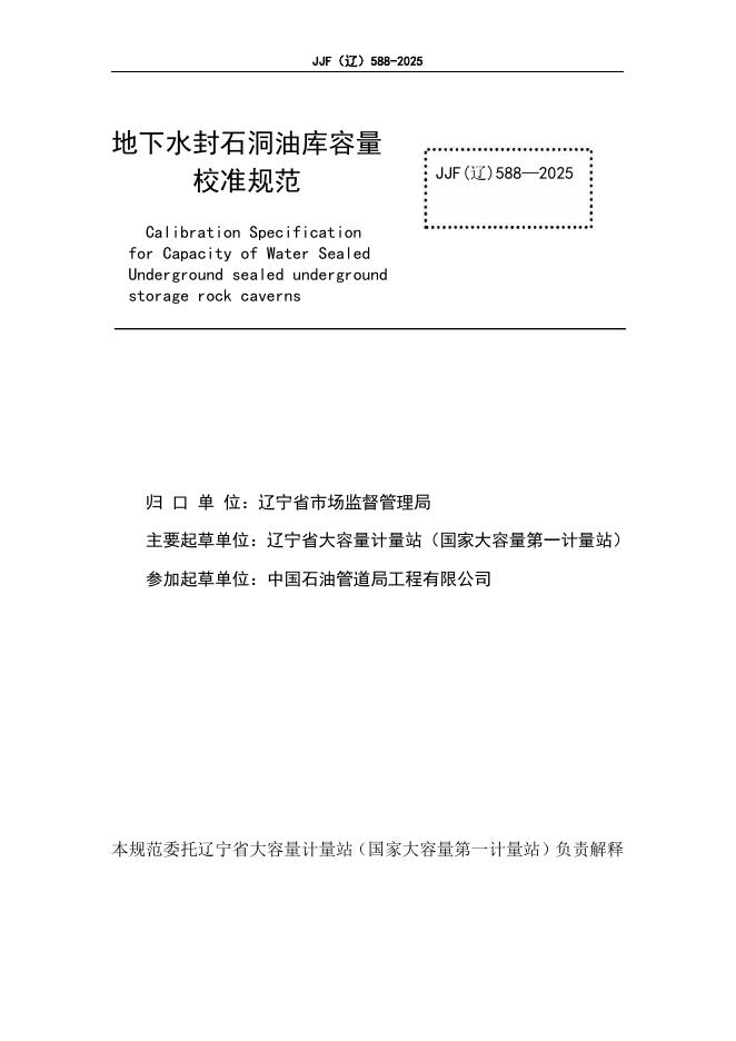 JJF(辽)588-2025 地下水封石洞油库容量校准规
