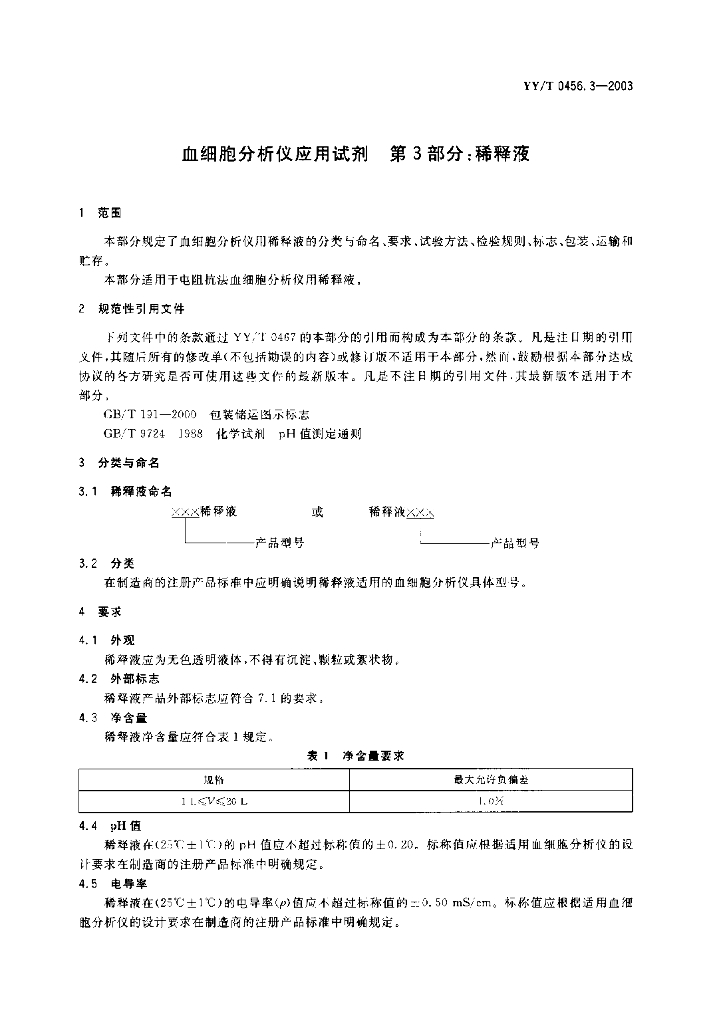YY/T 0456.3-2003 血细胞分析仪应用试剂 第3部分:稀释液