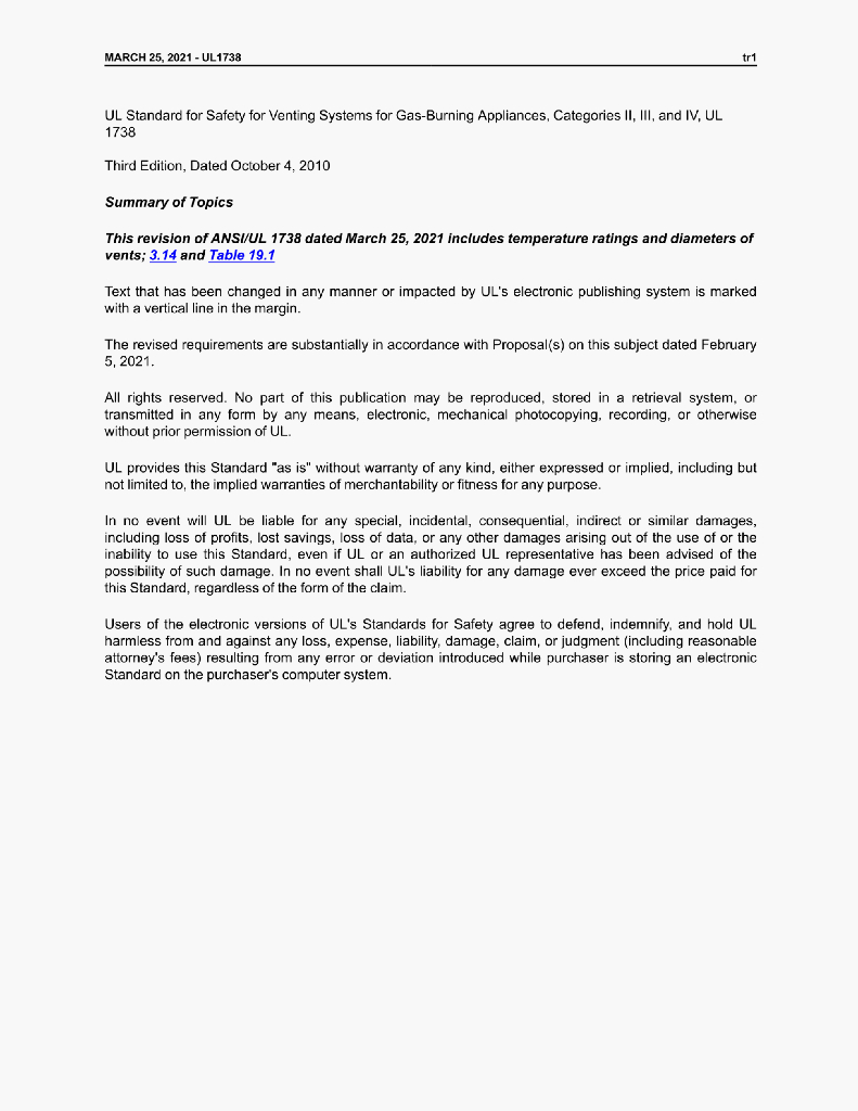 UL 1738 STANDARD FOR SAFETY Venting Systems for Gas-BurningAppliances, Categories ll, Ill, and lV