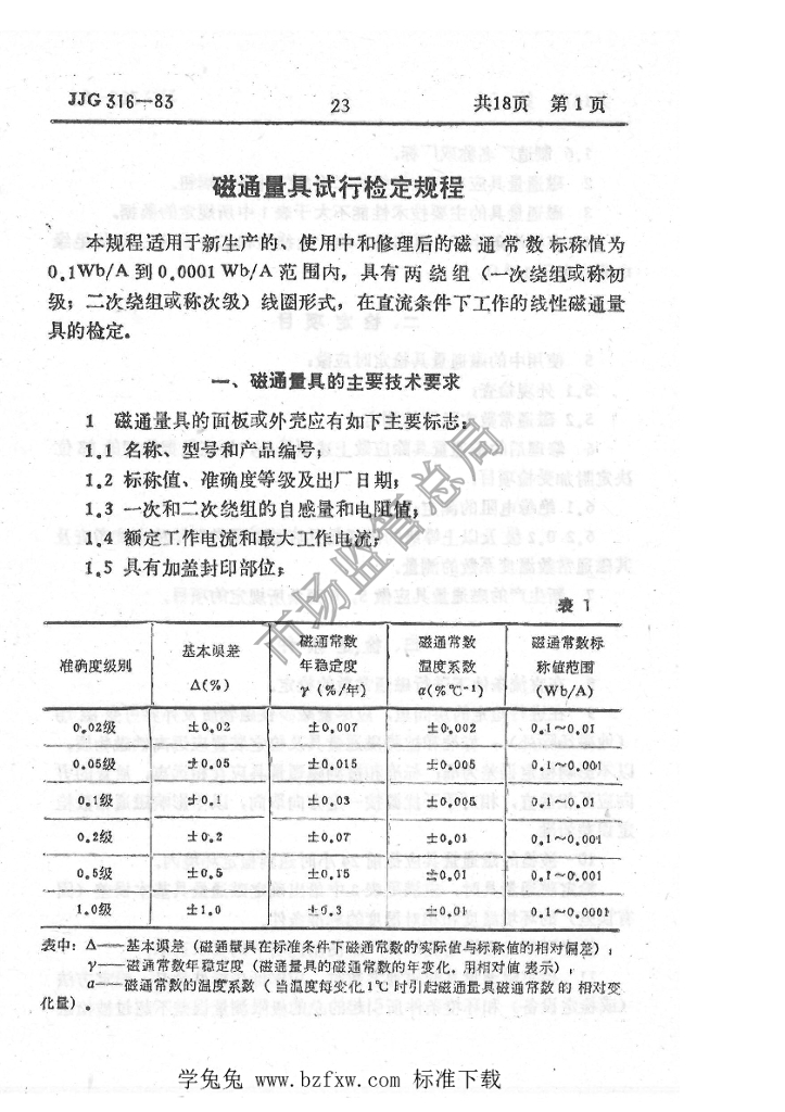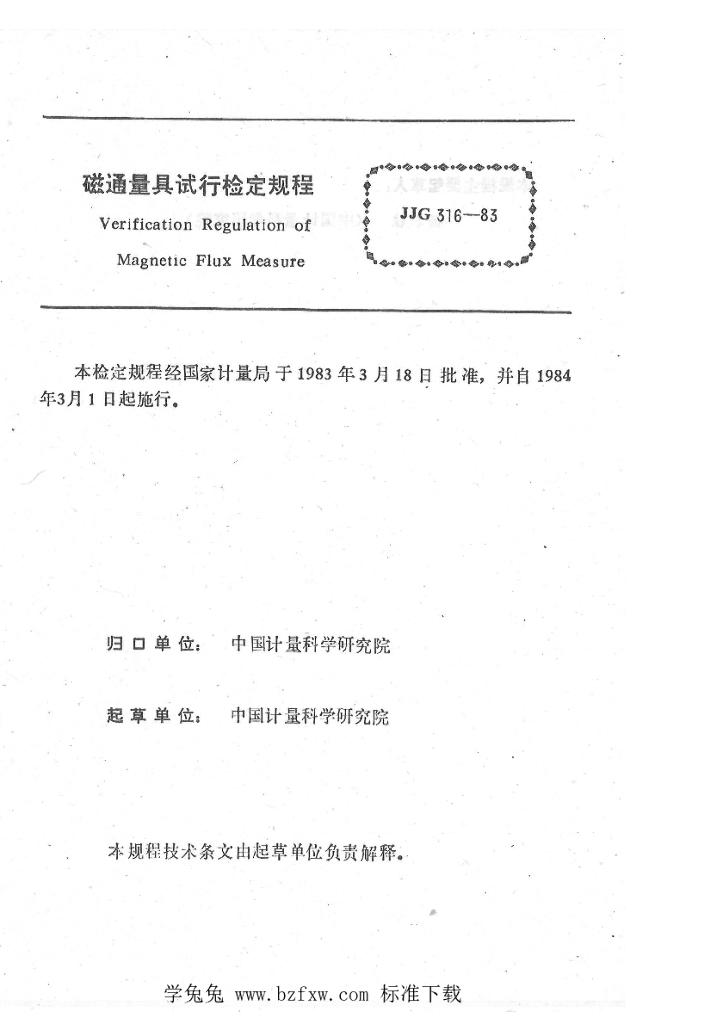 JJG 316-1983 磁通量具试行检定规程