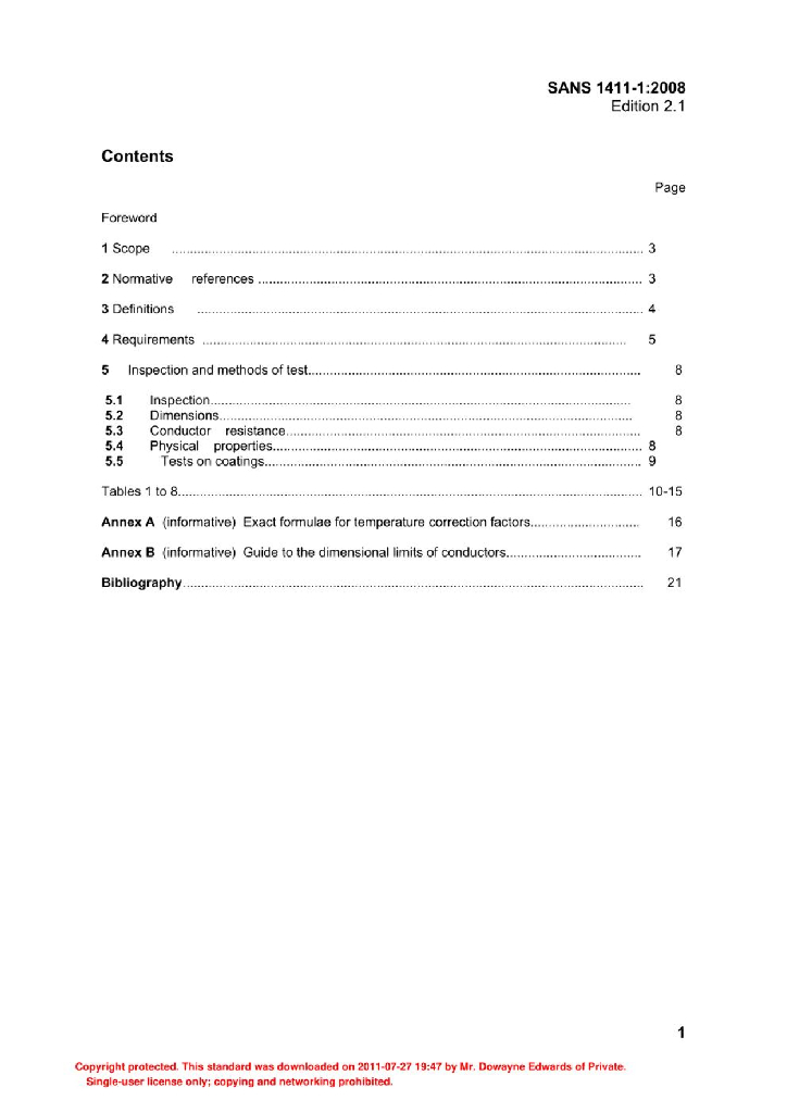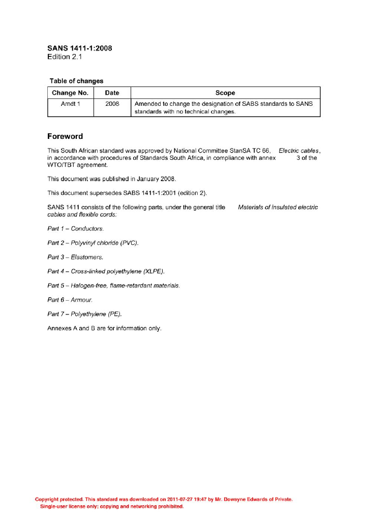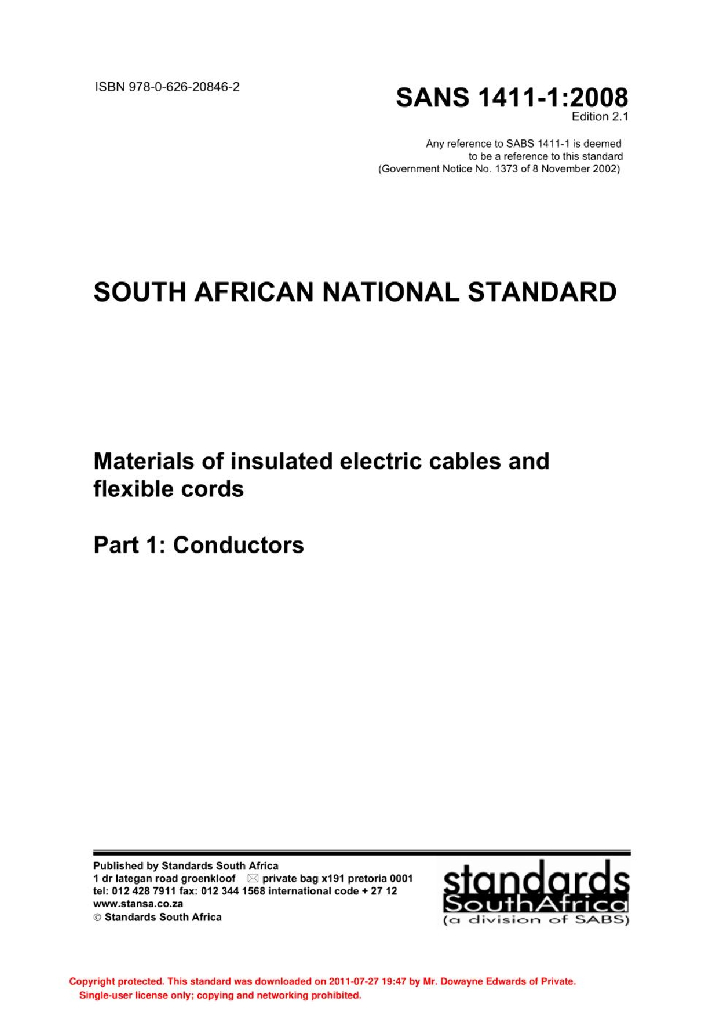 SANS 1411-1 绝缘电缆和软线材料 第1部分:导体