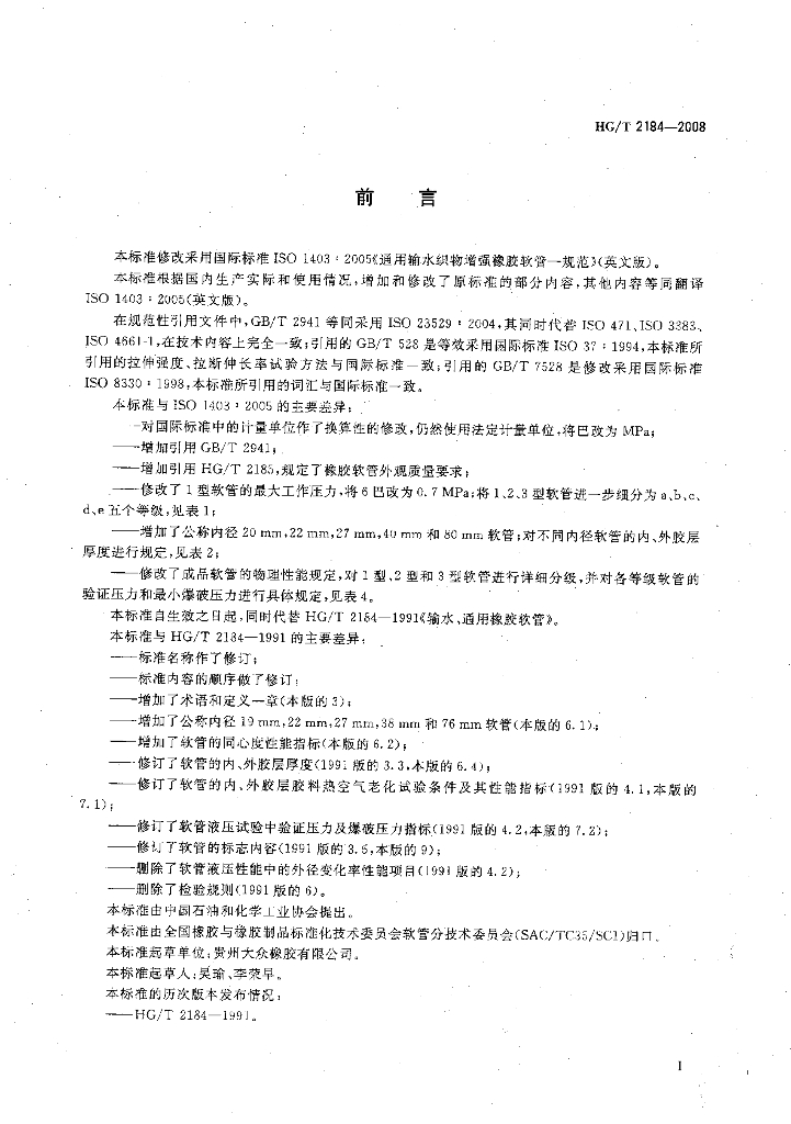 HG/T 2184-2008 通用输水织物增强橡胶软管