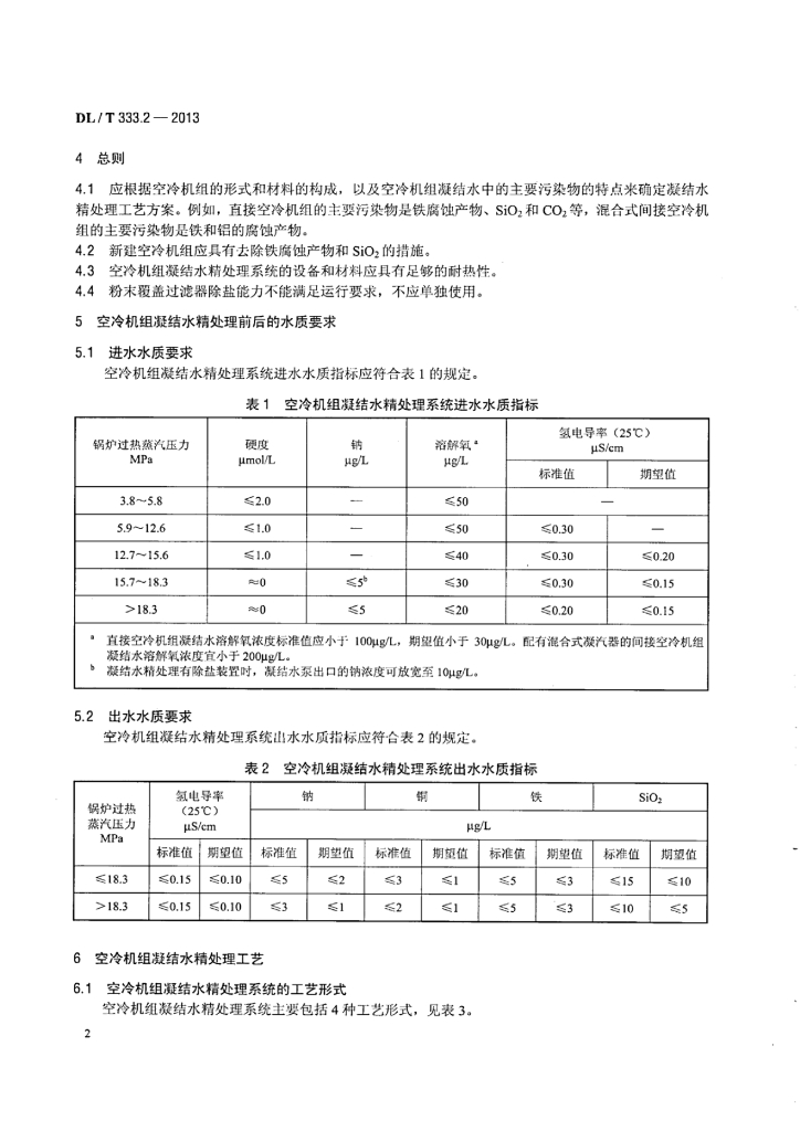DL/T 333.2-2013 火电厂凝结水精处理系统技术要求 第2部分:空冷机组