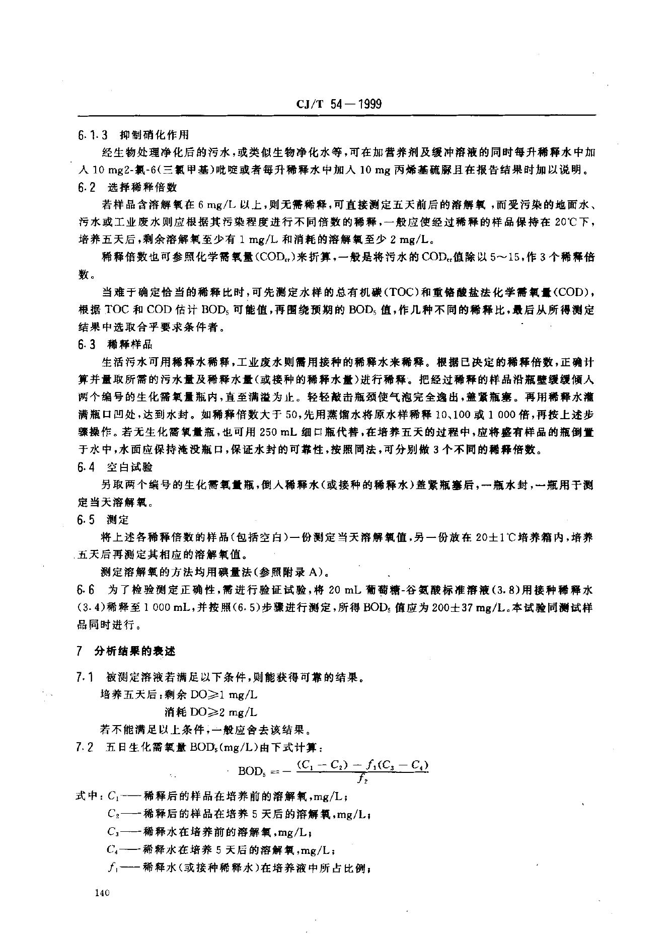 CJ 26.4-1991 城市污水水质检验方法标准 五日生化需氧量的测定 稀释与接种法