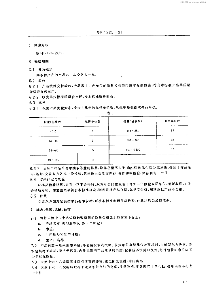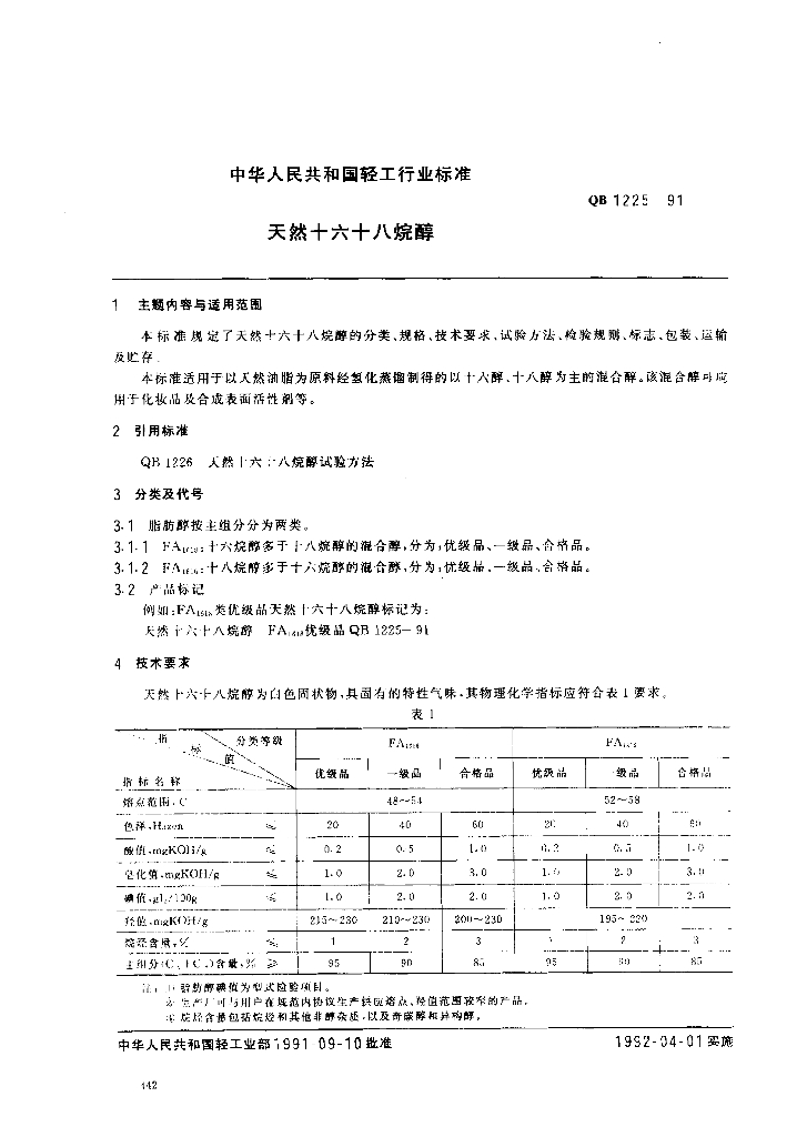 QB 1225-1991 天然十六十八烷醇