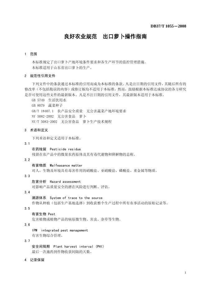 DB37/T 1055-2008 良好农业规范 出口萝卜操作指南