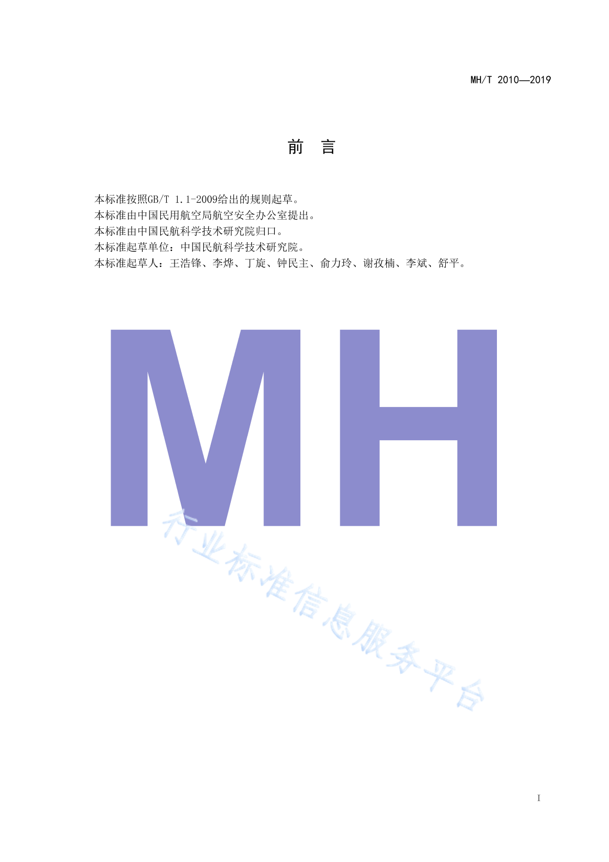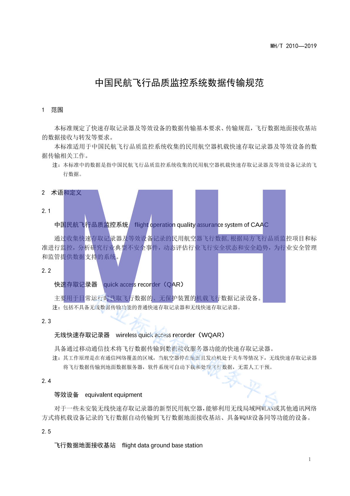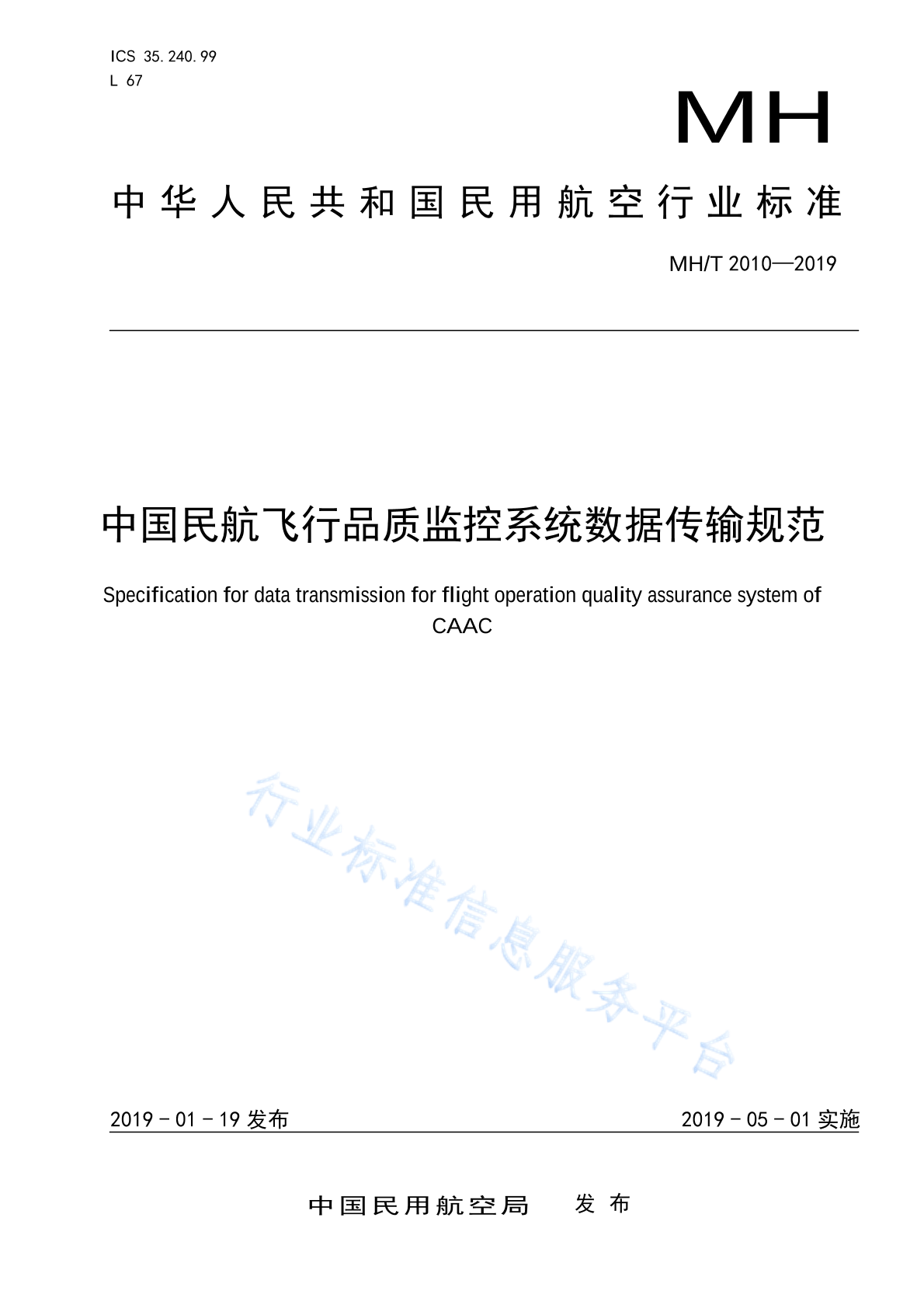 MH/T 2010-2019 中国民航飞行品质监控系统数据传输规范