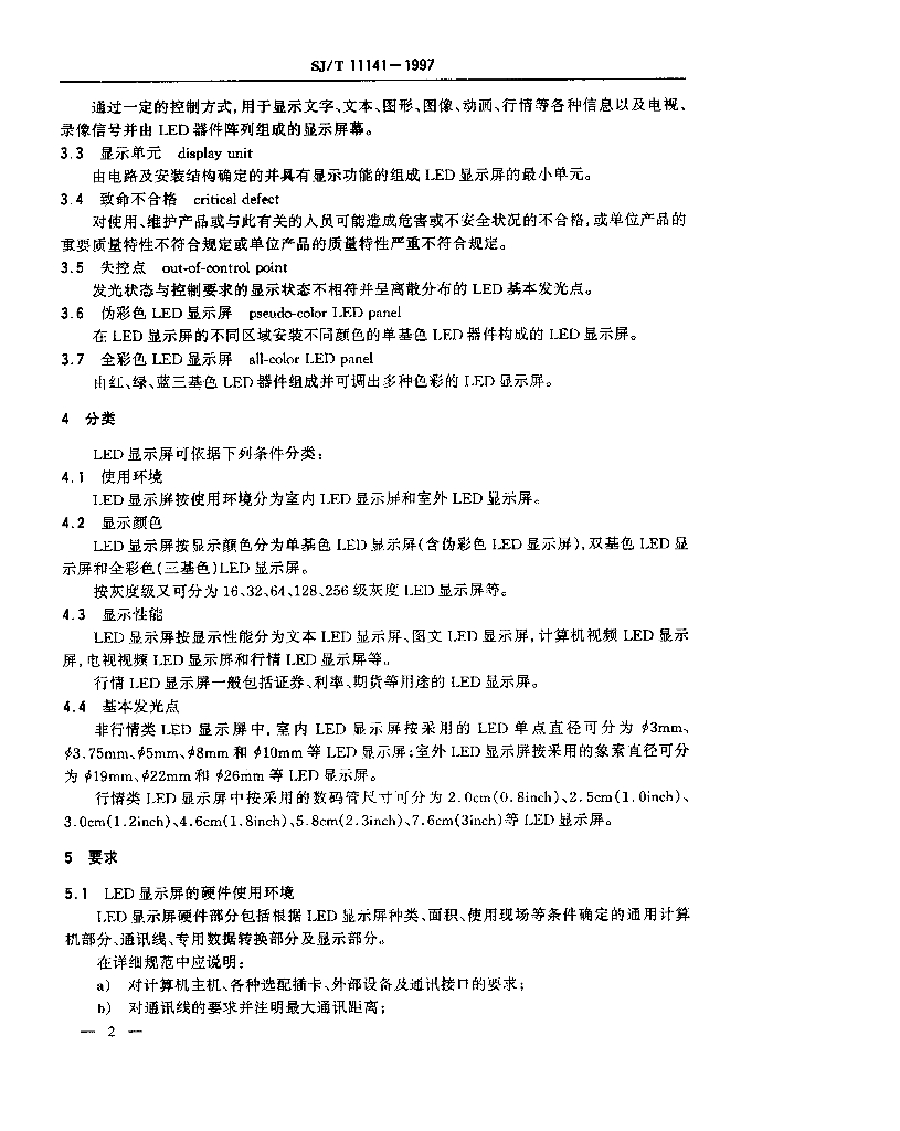 SJ/T 11141-1997 LED显示屏通用规范