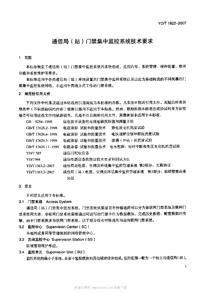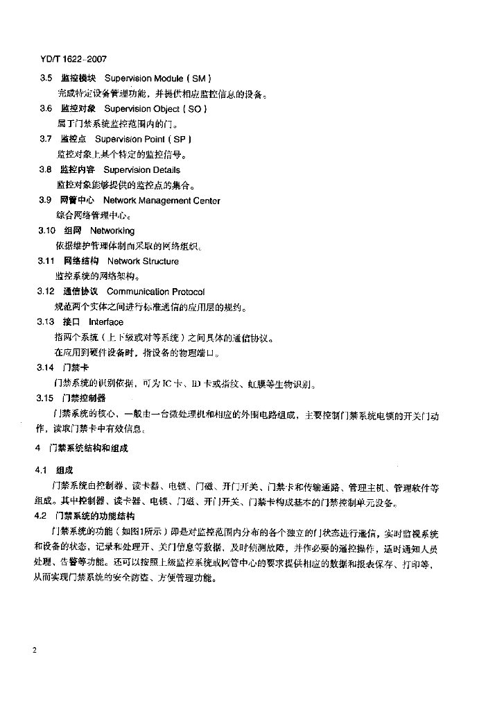 YD/T 1622-2007 通信局(站)门禁集中监控系统技术要求
