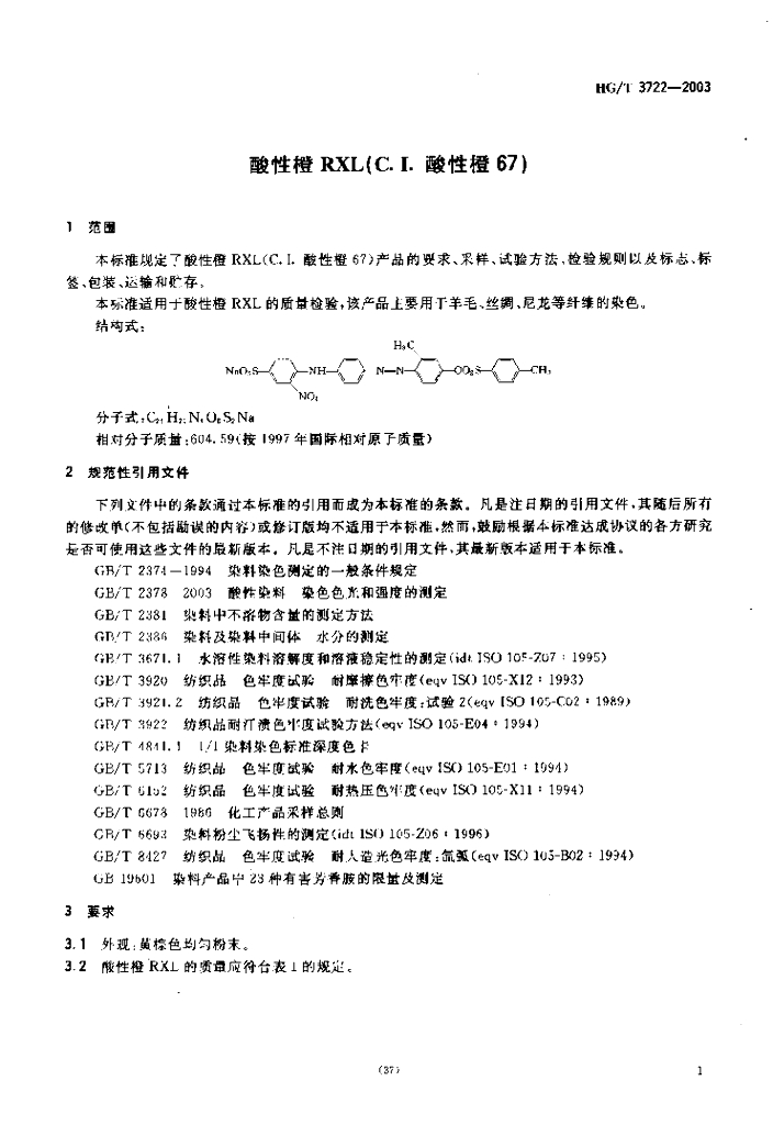 HG/T 3722-2003 酸性橙 RXL(C.I. 酸性橙 67)