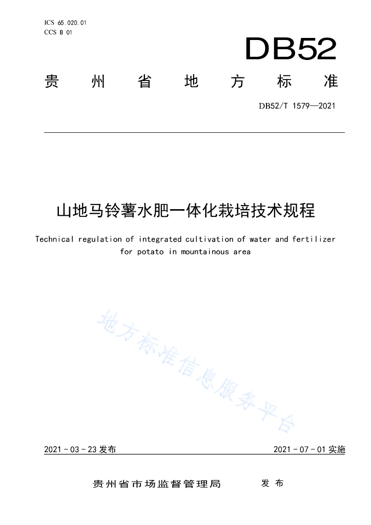 DB52/T 1579-2021 山地马铃薯水肥一体化栽培技术规程
