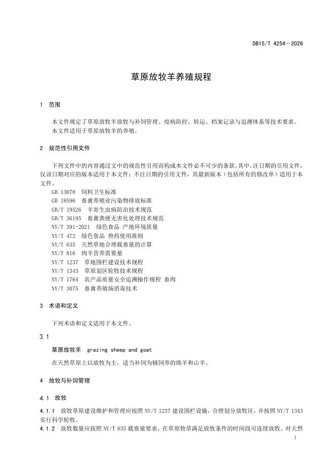 DB15/T 4254-2026 草原放牧羊养殖规程