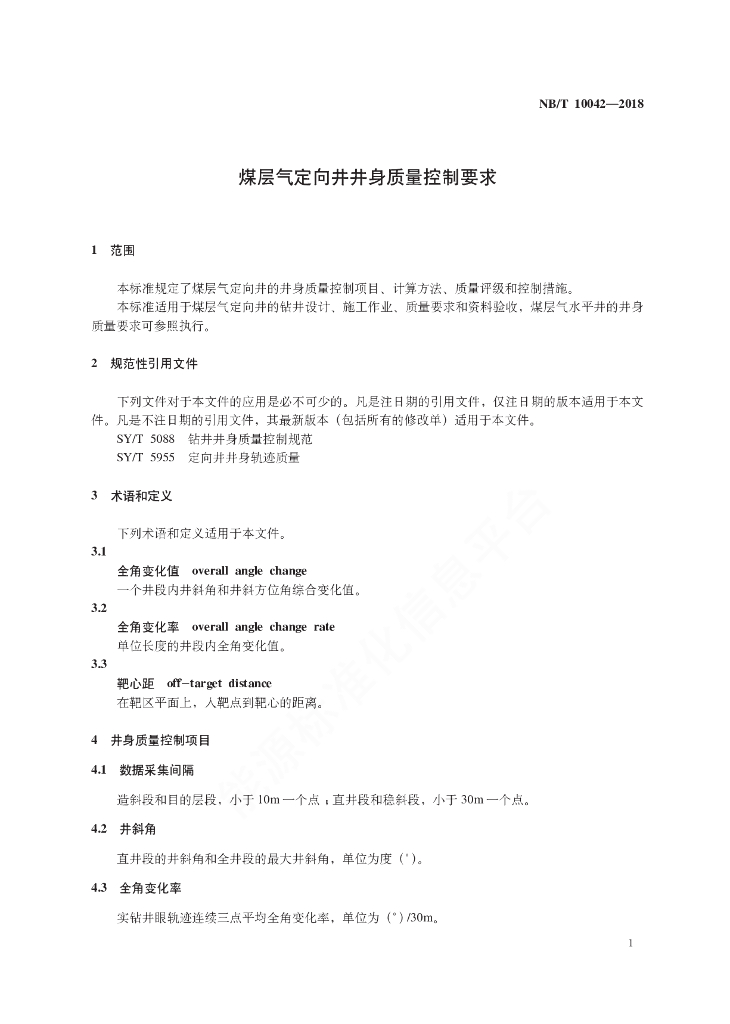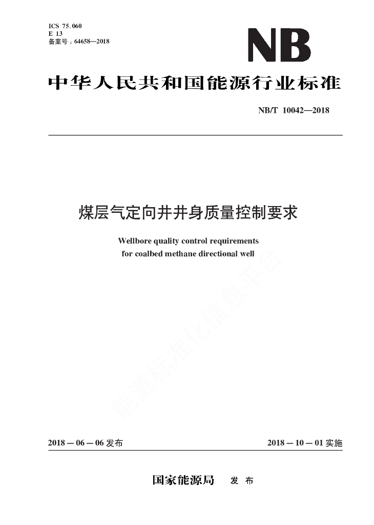 NB/T 10042-2018 煤层气定向井井身质量控制要求