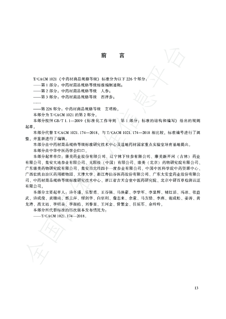 康美药业股份有限公司、辽宁林下柱参有限公司、康美新开河(吉林)药业有限 公司、集安大地参业有限公司、无限极(中国)有限公司、康美(北京)药物研究院有限公司、广东康 美药物研究院有限公司、集安市北纬四十一度参业有限公司、中国中医科学院中药资源中心、广西壮族 自治区药用植物园、广东太安堂药业股份有限公司、中药材商品规格等级标准研究技术中心、浙江省吉 天合堂中医药研究院、北京中研百草检测认证有限公司