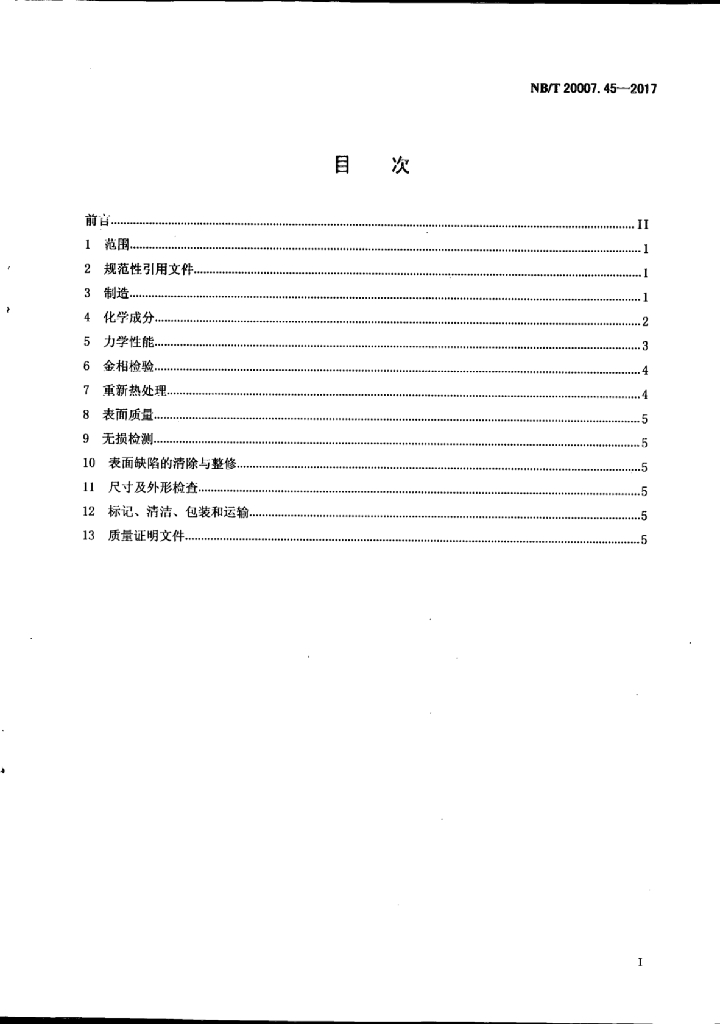 NB/T 20007.45-2017 压水堆核电厂用不锈钢 第45部分:压紧弹性环用04Cr13Ni5Mo马氏体不锈钢锻件