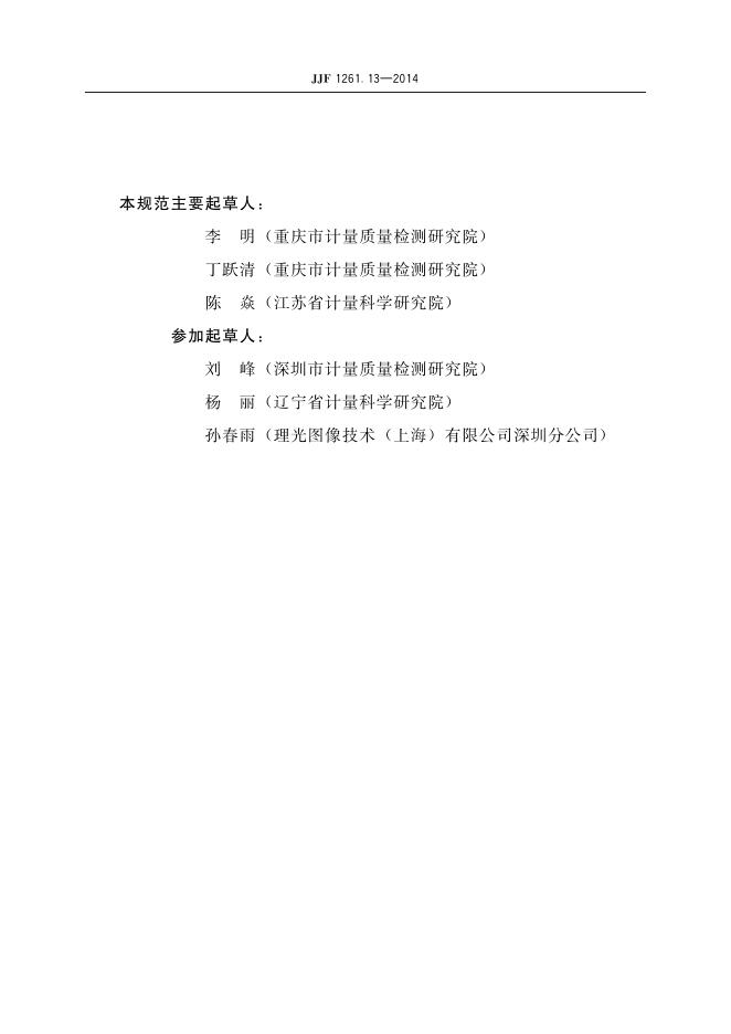 李明(重庆市计量质量检测研究院)、丁跃清(重庆市计量质量检测研究院)、陈众(江苏省计量科学研究院)、刘峰(深圳市计量质量检测研究院)、杨丽(辽宁省计量科学研究院)、孙春雨(理光图像技术(上海)有限公司深圳分公司)