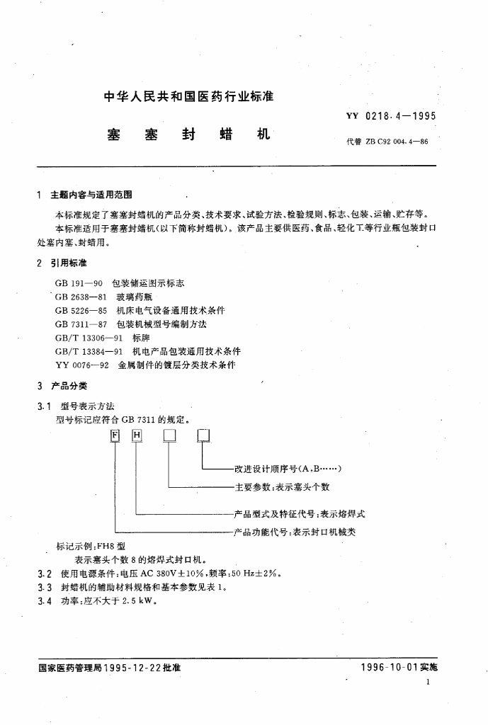 YY 0218.4-1995 塞塞封蜡机