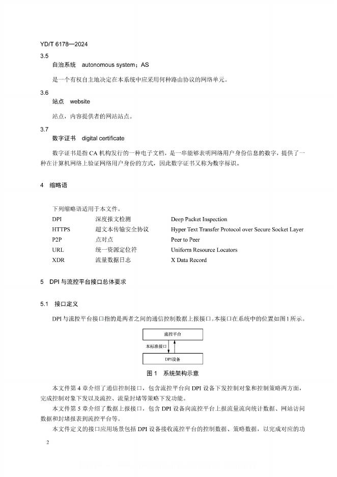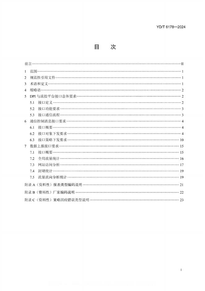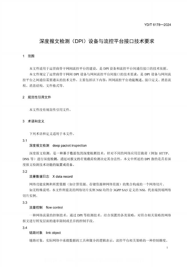 YD/T 6178-2024 深度报文检测(DPI)设备与流控平台接口技术要求