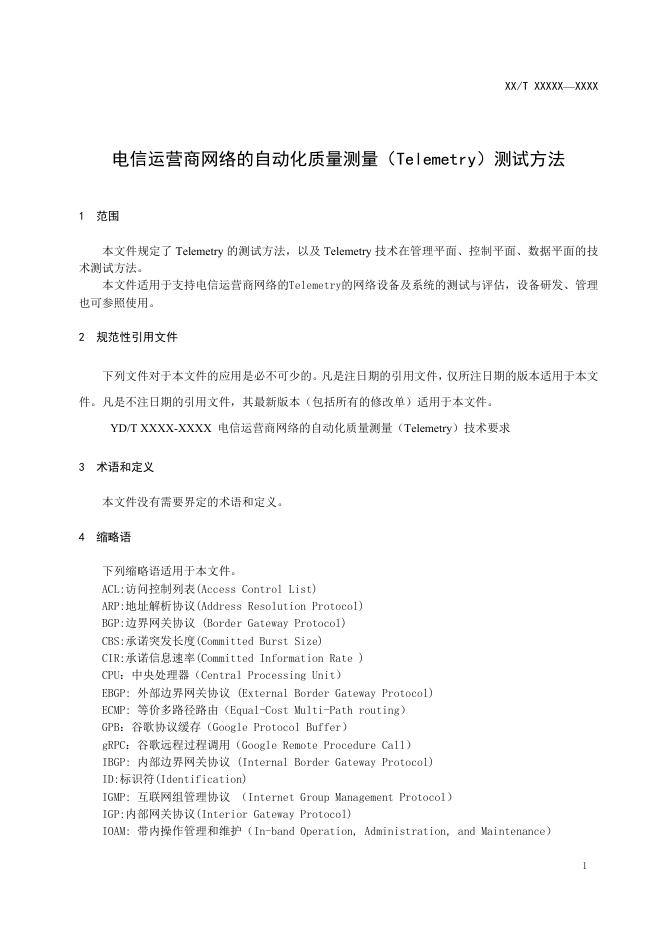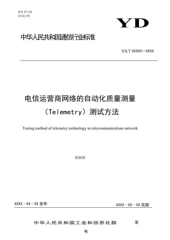 YD/T 4821-2024 电信运营商网络的自动化质量测量(Telemetry)测试方法